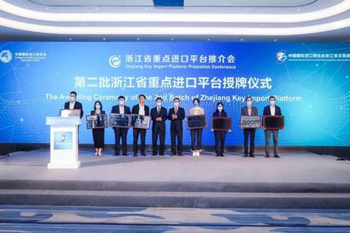 | 11月7日,中國第四屆進(jìn)口博覽會暨浙江省重點進(jìn)口平臺推介會在上海舉辦。會議發(fā)布新一批浙江省進(jìn)口貿(mào)易促進(jìn)創(chuàng)新示范區(qū)和26個浙江省重點進(jìn)口平臺,寧波聯(lián)合集團(tuán)進(jìn)出口股份有限公司被評為浙江省重點進(jìn)口平臺之一。